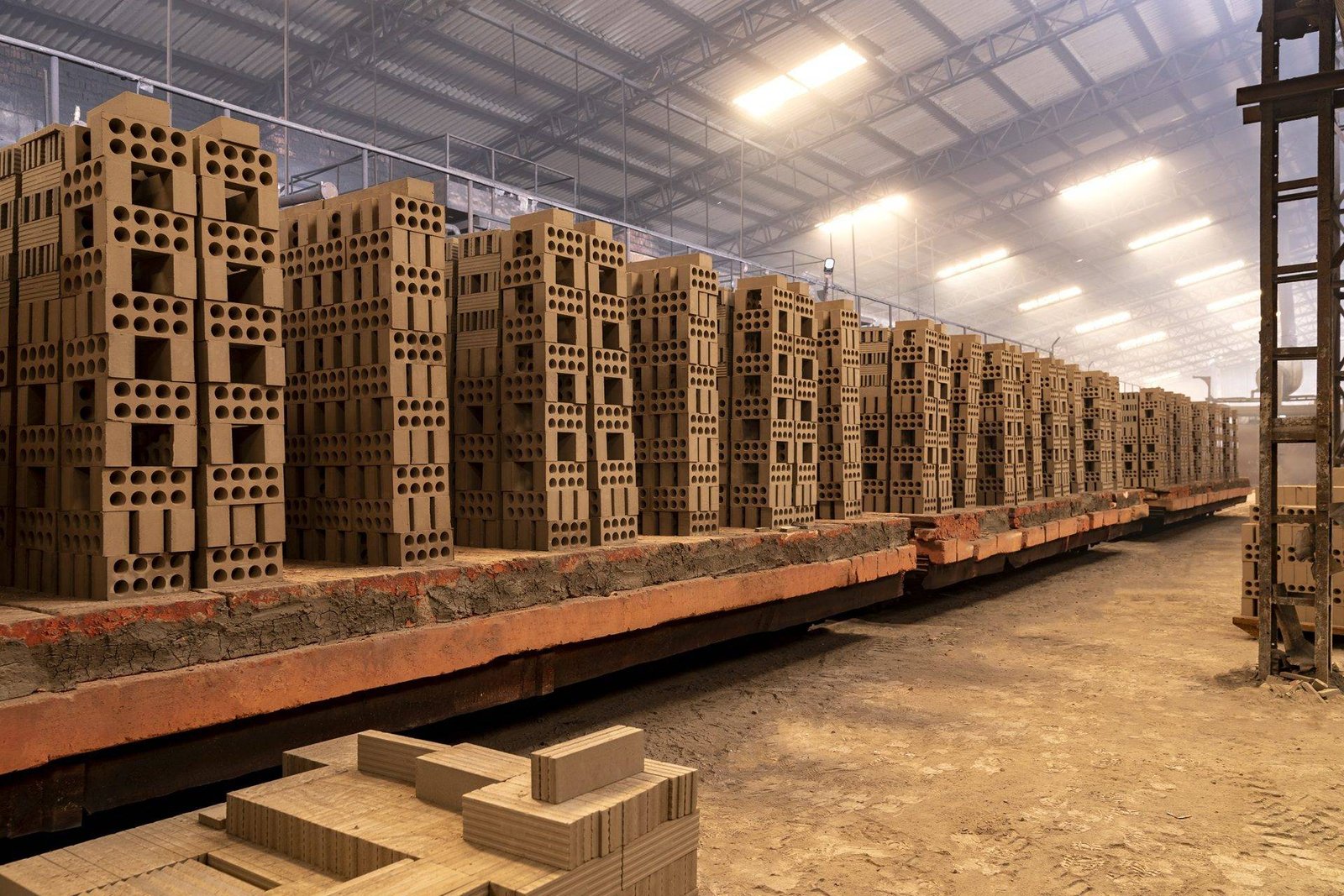 Jindal Mechno Bricks, the best brick factory in India, produces extruded bricks by shaping clay dough into slabs and cutting them into bricks using wires.